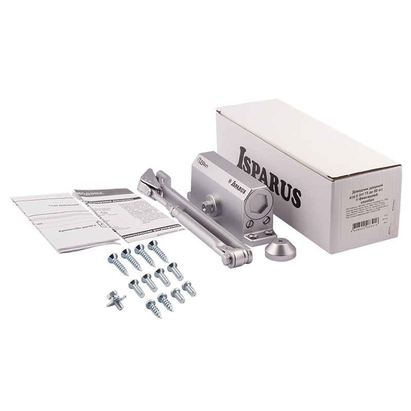 Доводчик НОРА-М-F ISPARUS 410 дверной фиксация на 15-60кг, усилие 2-3, серебро,морозостойкий (12)