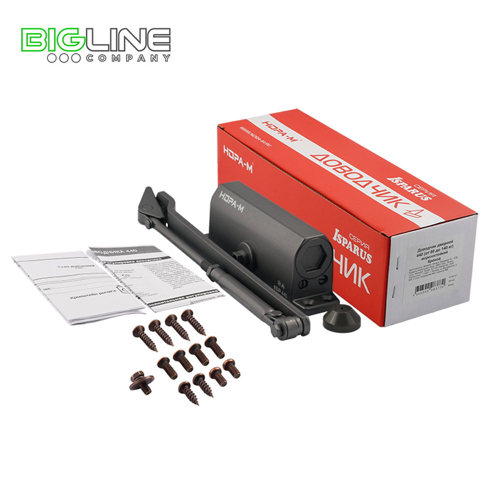 Доводчик НОРА-М-ISPARUS 440 дверной на 80-140кг, усилие 2-3, графит,морозостойкий (10)
