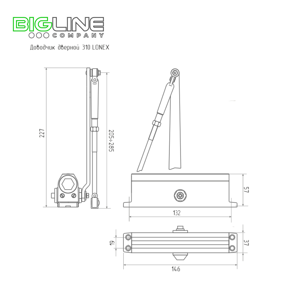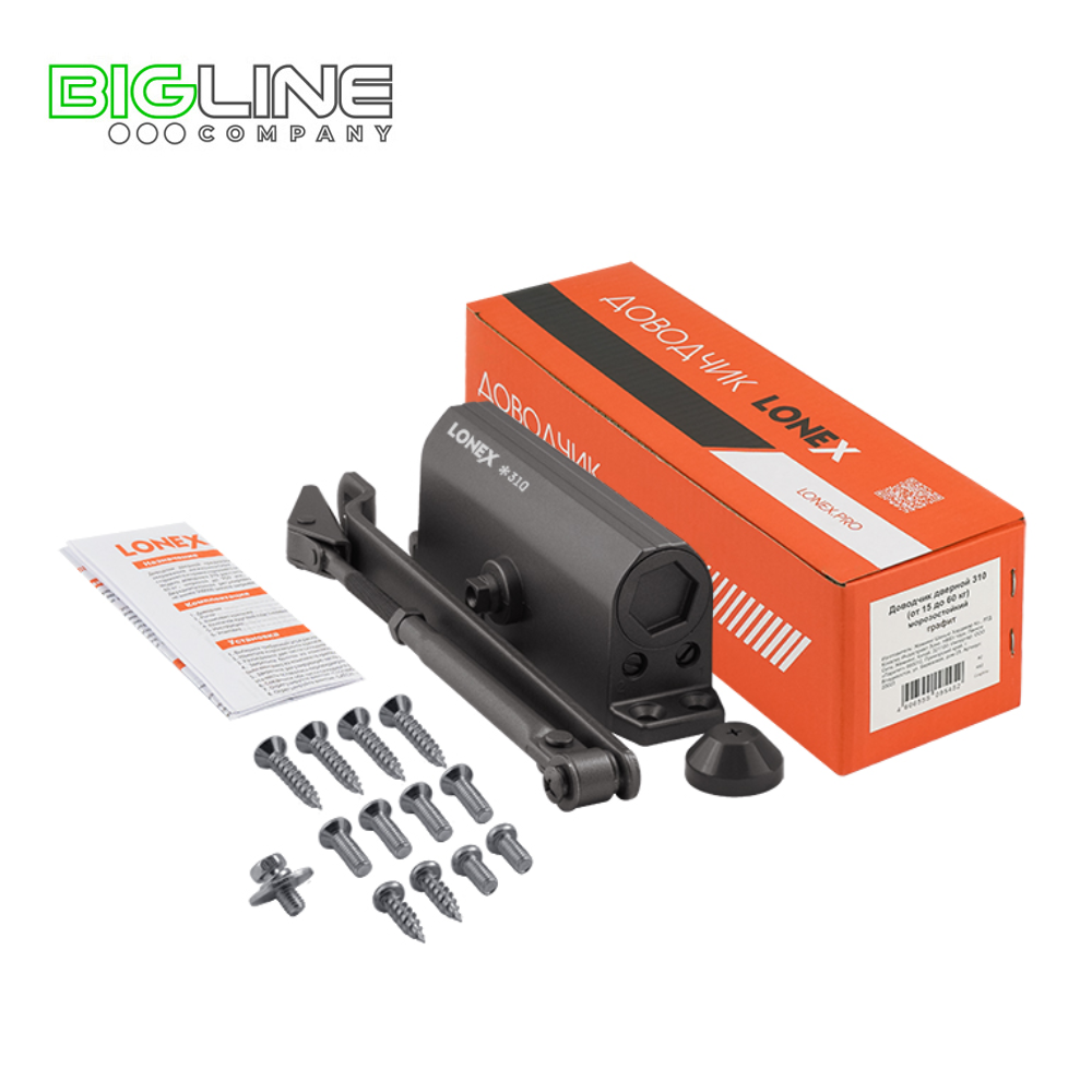 Доводчик LONEX 310 дверной на 15-60кг, графит, морозостойкий (10)