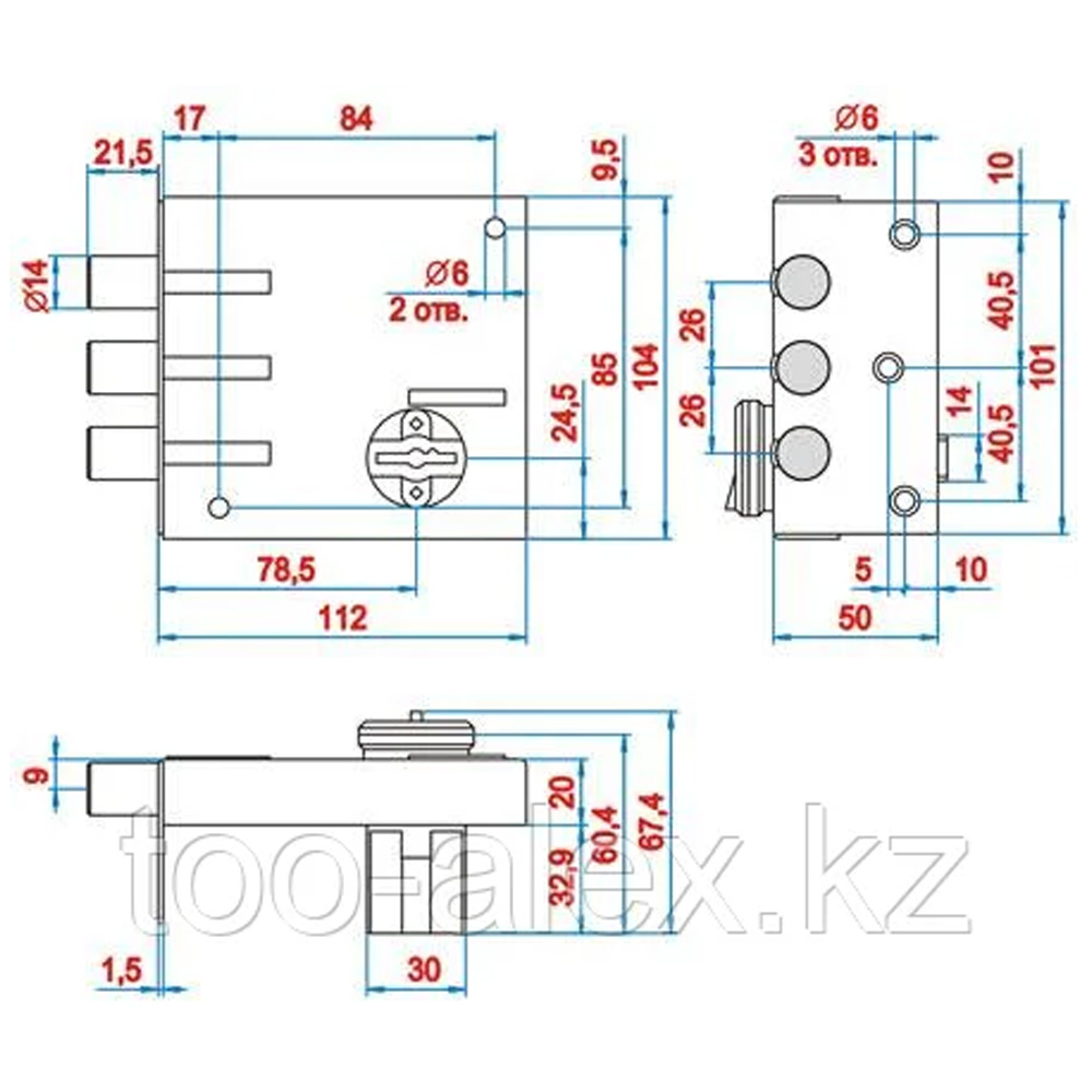 Замок ЭЛЬБОР К 1.04.52 МА накладной сувальдный 3 ригеля (10)