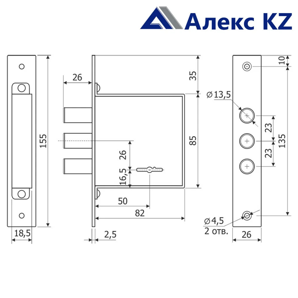 Замок ГАРДИАН 10.01 врезной сувальдный без защёлки.
