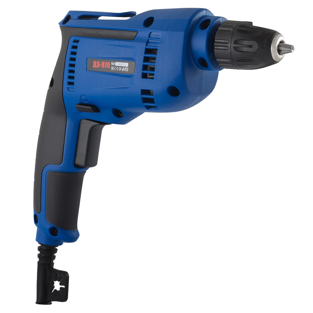 Витязь ДЭ-970 - безударная электрическая дрель небольшой мощности с быстрозажимным патроном и поясным креплением. Подходит для сверления металла, пластика или дерева, может быть использована в качестве шуруповерта.