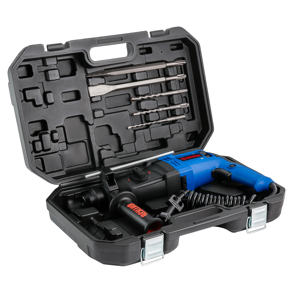 Комплектация: кейс, 3 SDS+ бура 8/10/12/ 150 мм, пика, зубило, регулируемая боковая рукоятка.