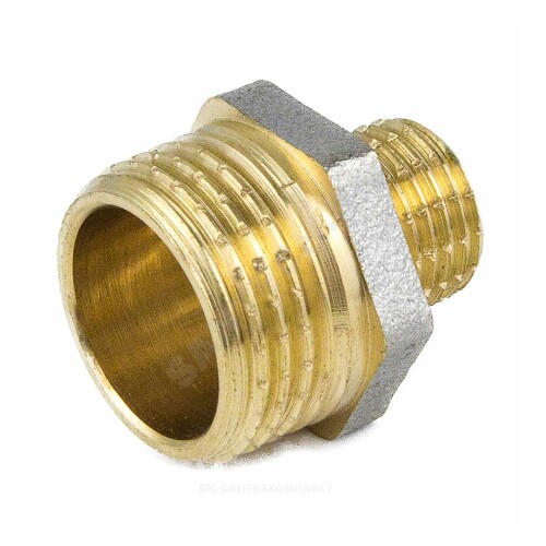 НИППЕЛЬ ЛАТУНЬ НИКЕЛЬ ПЕРЕХОДНОЙ ДУ 25Х15 (1"Х1/2") НР 9023 ГОСТ 32585-2013 AQUASFERA 9023-04