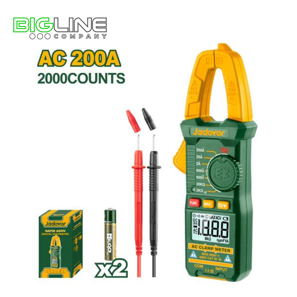 Клещи циф.переменного тока, АС 200А,2000 отсчетов,2 батарейки R03 AAA Jadever (20/40)