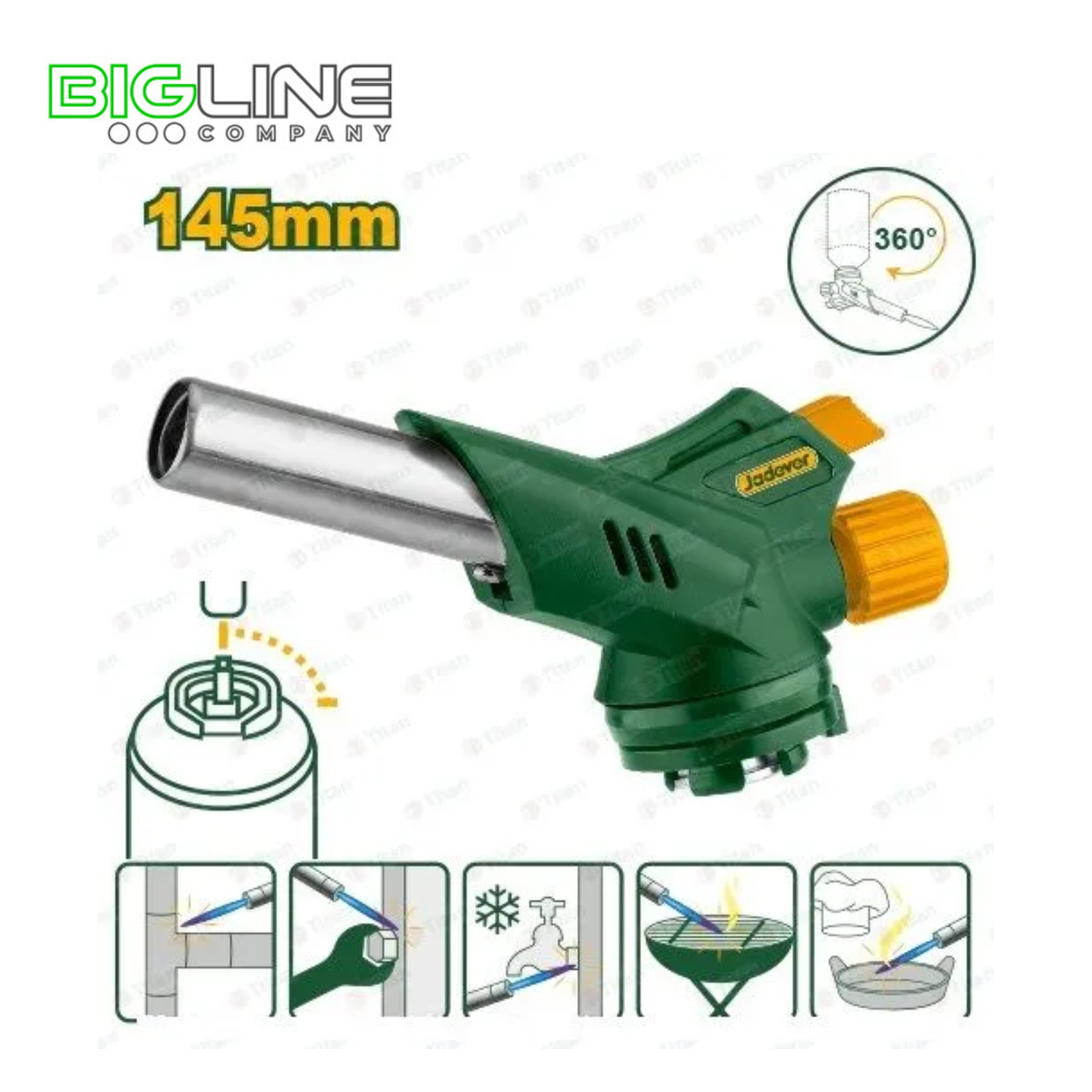 Пистолет газовый Jadever, 145 мм (1300°C, 80 г/ч) — надежный инструмент для пайки, поджига, обжига и различных бытовых и строительных задач. Работает от стандартного газового баллона, обеспечивает мощное и стабильное пламя с возможностью использования под любым углом (360°).