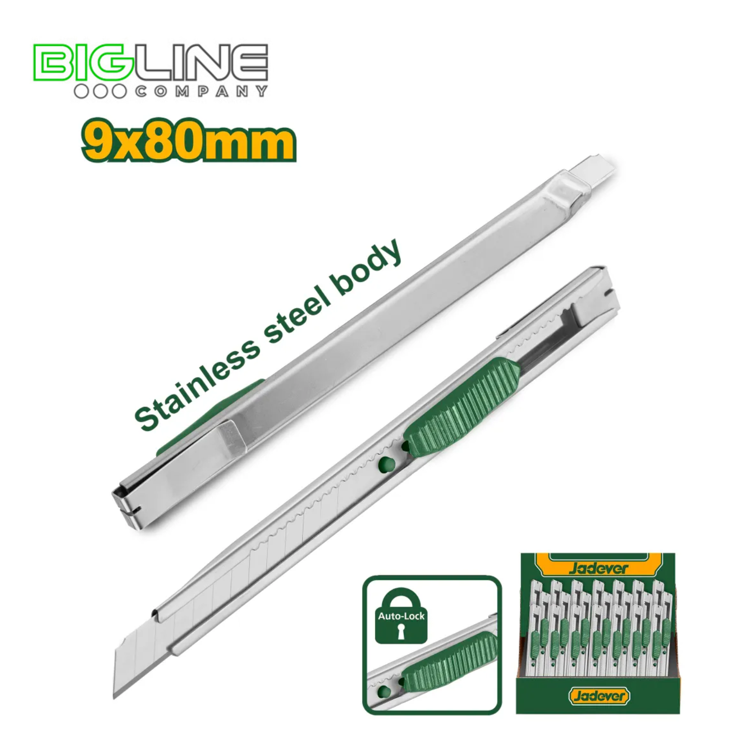 Нож с отламывающимся лезвием, нерж.корпус 9*80мм Jadever (50/600)