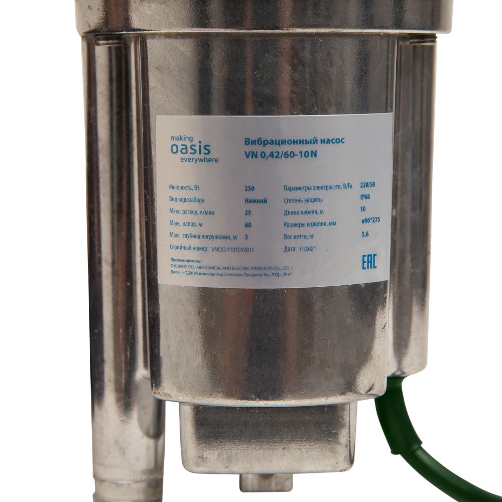 Насос Oasis вибрационный VN 0,42/60-25N (K) нижний клапан (6) Запросить прайс