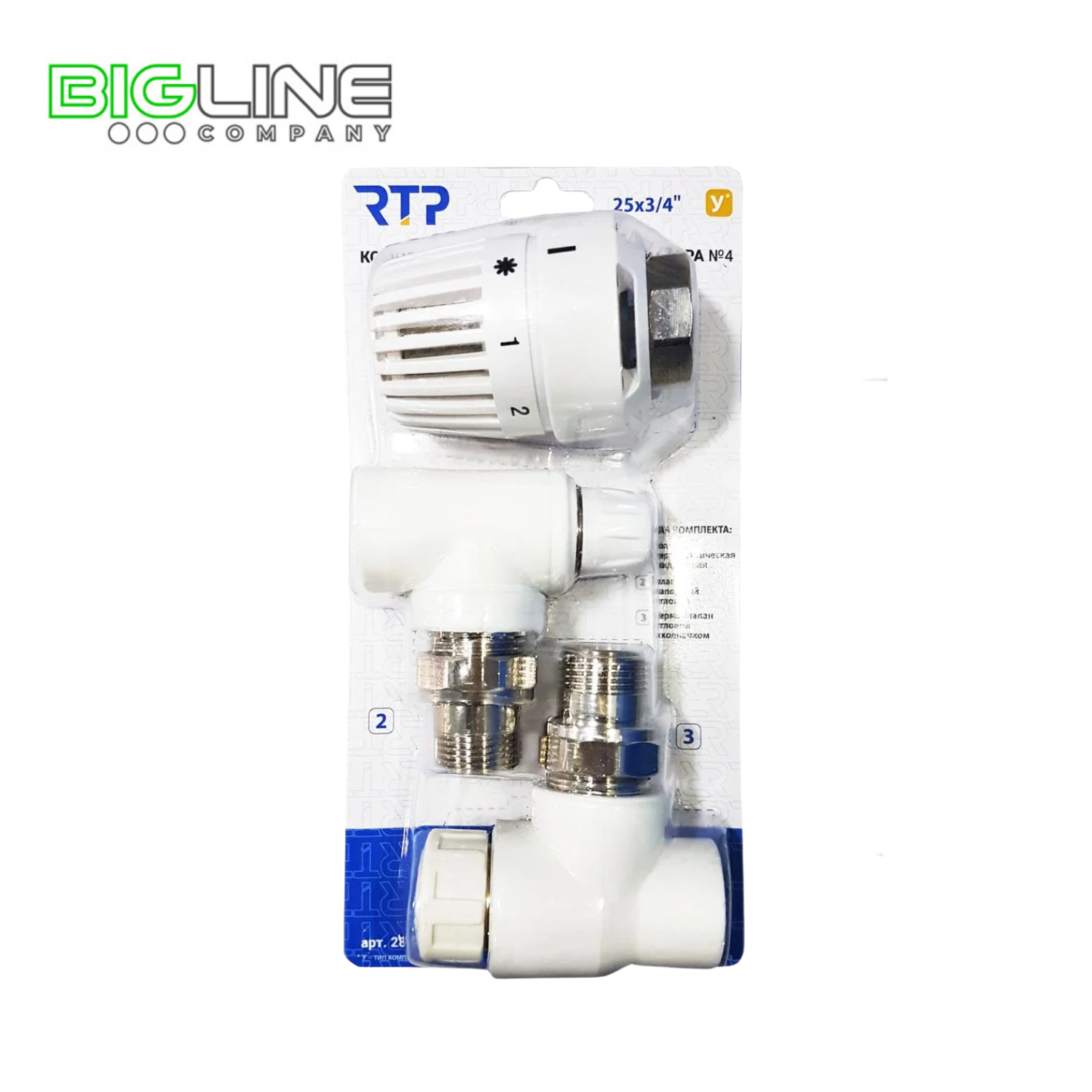 Комплект №4 (Термостат.клапан угловой,клапан запорный угловой,термостат.головка) PPR 25*3/4 РТП (17)