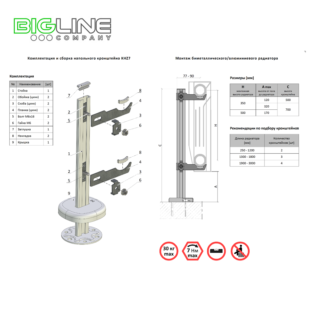 Кронштейн КНZ 7.70 напольное крепление алюминиевых радиаторов (10) Запросить прайс