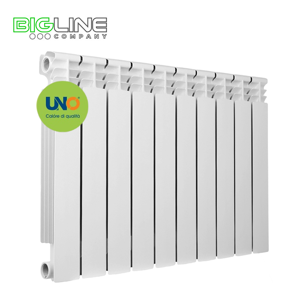 Радиаторы отопления UNO TWIN 500/80 предназначены для применения в качестве отопительных приборов в системах водяного отопления жилых и общественных зданий. Радиаторы могут использоваться как для автономных систем отопления, так и для систем центрального отопления, в том числе многоэтажных высотных зданий. Каждая секция радиатора имеет два стальных горизонтальных коллектора, соединенных между собой вертикальной стальной трубкой. В целях повышения теплоотдачи, предварительно спаянные стальные трубки (стальной сердечник) сверху заливают алюминиевым сплавом методом литья под давлением в заранее приготовленные формы. Благодаря стальному сердечнику теплоноситель (вода, антифриз) не имеет контакта с алюминиевой поверхностью. Поэтому этот прибор более пригоден для применения в отопительных системах с плохим качеством теплоносителя (PH 810), что непозволительно для простых алюминиевых радиаторов.
