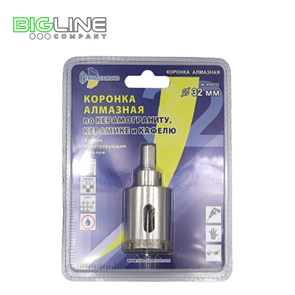 Коронка алмазная по керамике и кафелю с центрирующим сверлом 32 мм