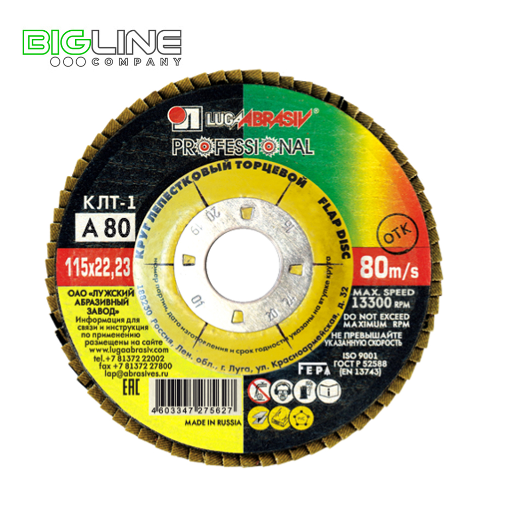 Круг LUGA ABRAZIV лепестковый торц.(шлиф) 115х22мм, зерно А 80 (10/80) Запросить прайс