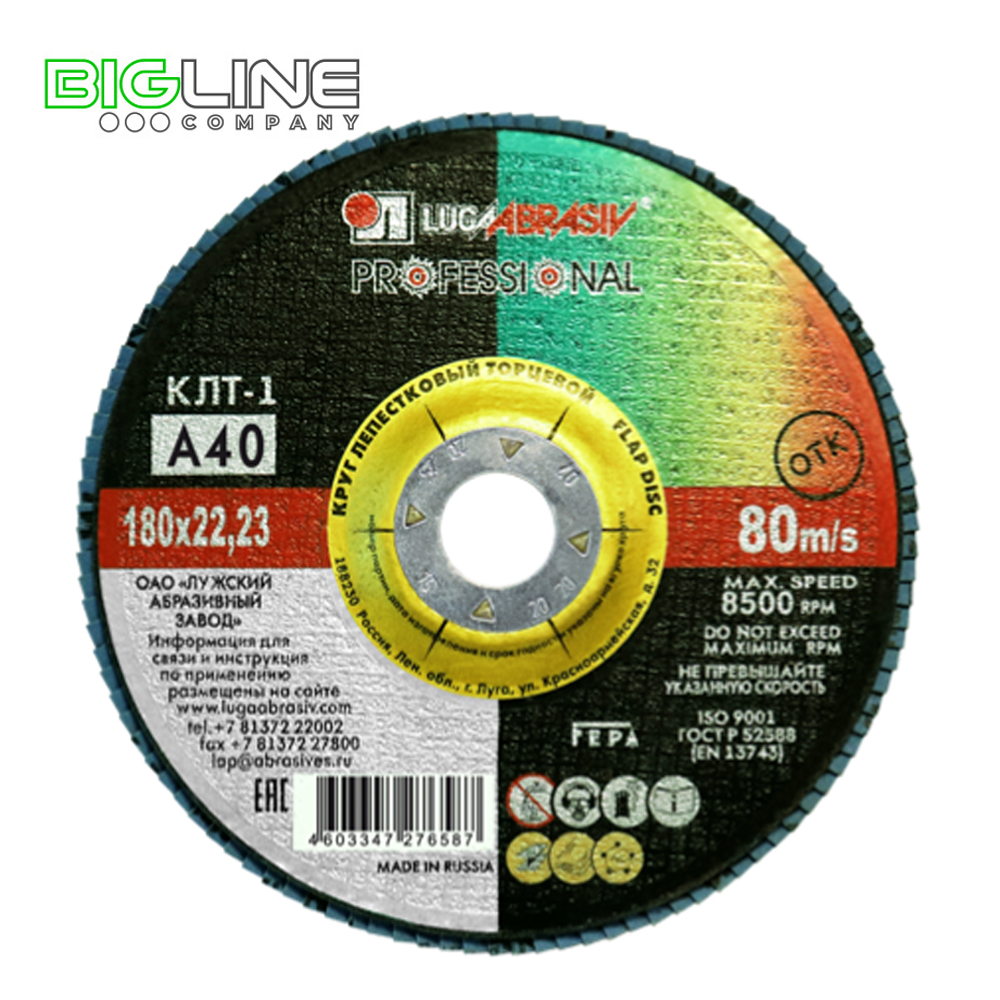Круг LUGA ABRAZIV лепестковый торц.(шлиф) 180х22мм, зерно А 40 (10/40) Запросить прайс