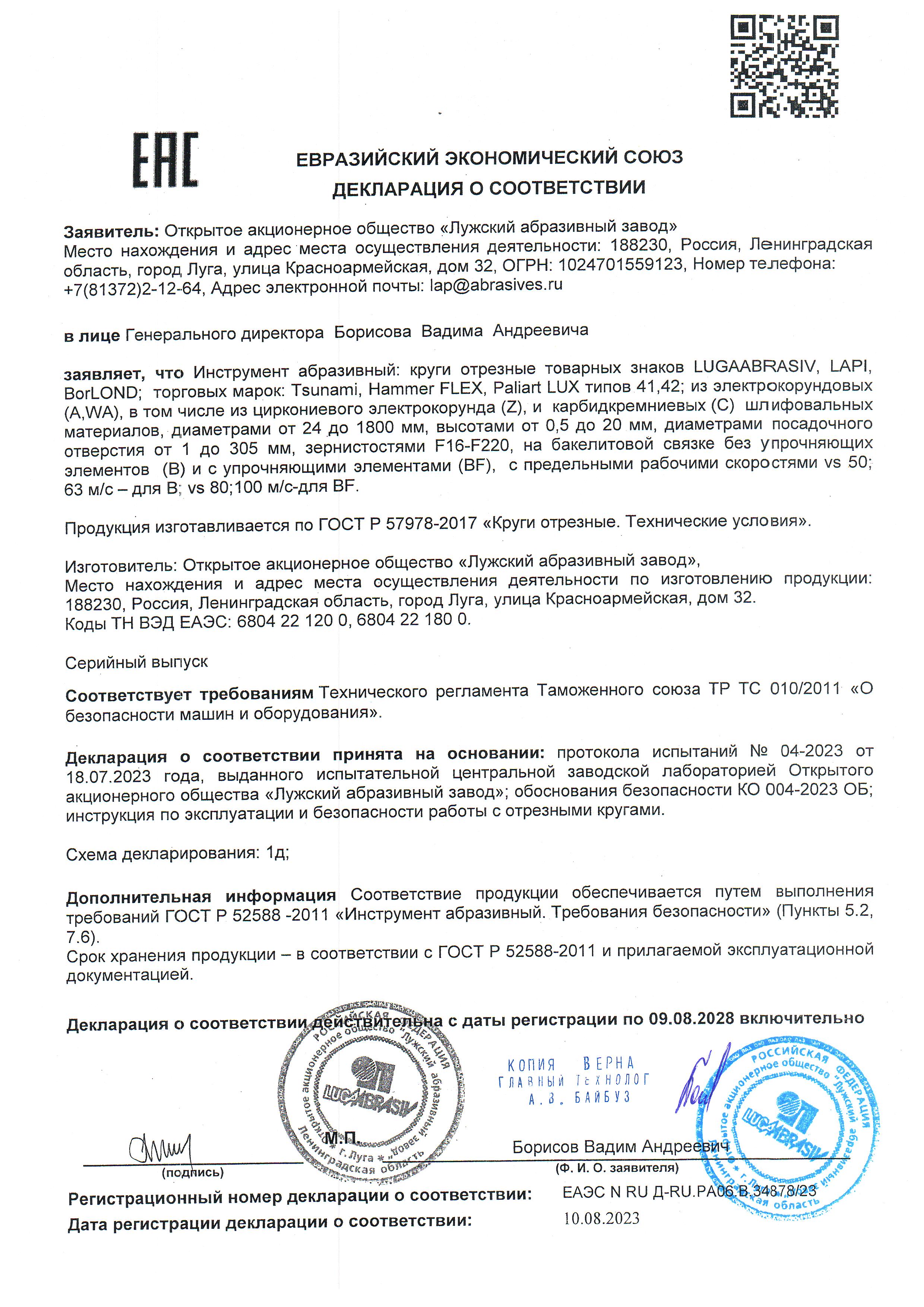 180*1,6*22.23 Круг отрезной по металлу Luga Abraziv (25/150) Запросить прайс