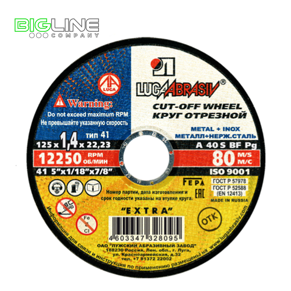125*1,4*22.23 Круг отрезной по металлу Luga Abraziv (25/400) Запросить прайс