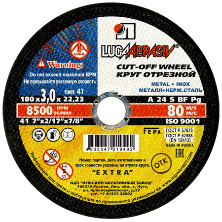 180*3*22,2 Круг отрезной по металлу Luga Abraziv (25/50) Запросить прайс
