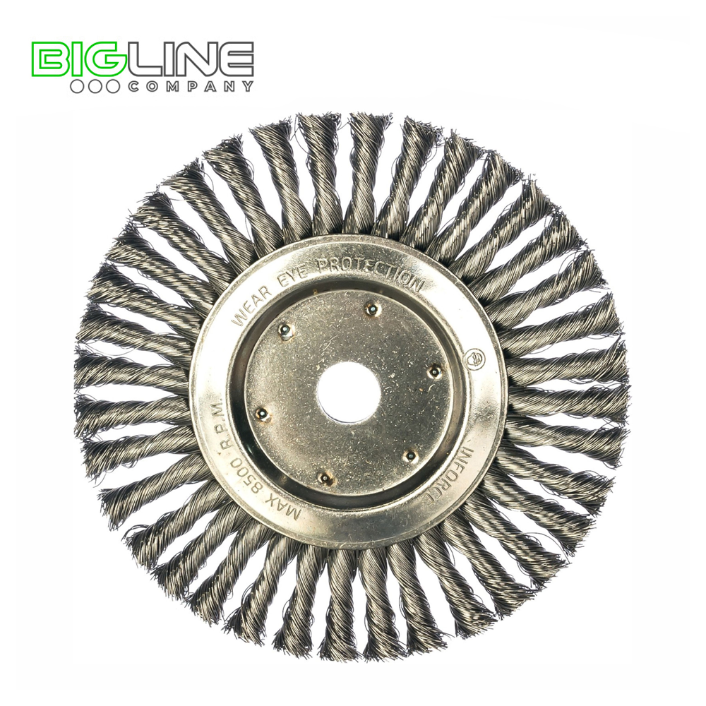 Щетка крацовка дисковая для УШМ, предназначена для зачистки поверхностей в труднодоступных местах от лакокрасочных покрытий, ржавчины, окалины, различных загрязнений с применением значительных усилий, а также для зачистки сварных швов. Щетка изготовлена из стальной жгутированной проволоки. Благодаря еще более высокой жесткости сплетенного пучка и увеличенной толщине проволоки щетка обладает повышенным ресурсом.