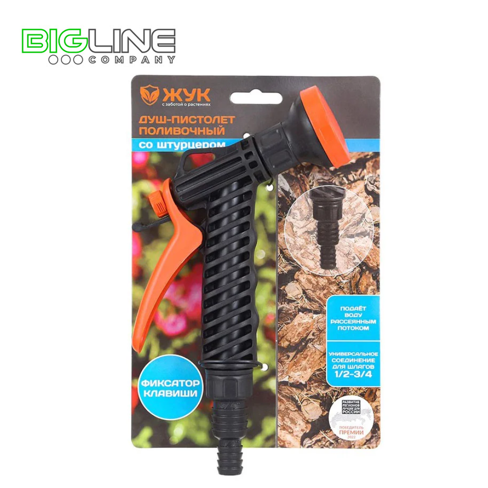 Душ-пистолет поливочный Жук с фиксатором 1/2-3/4 (16)