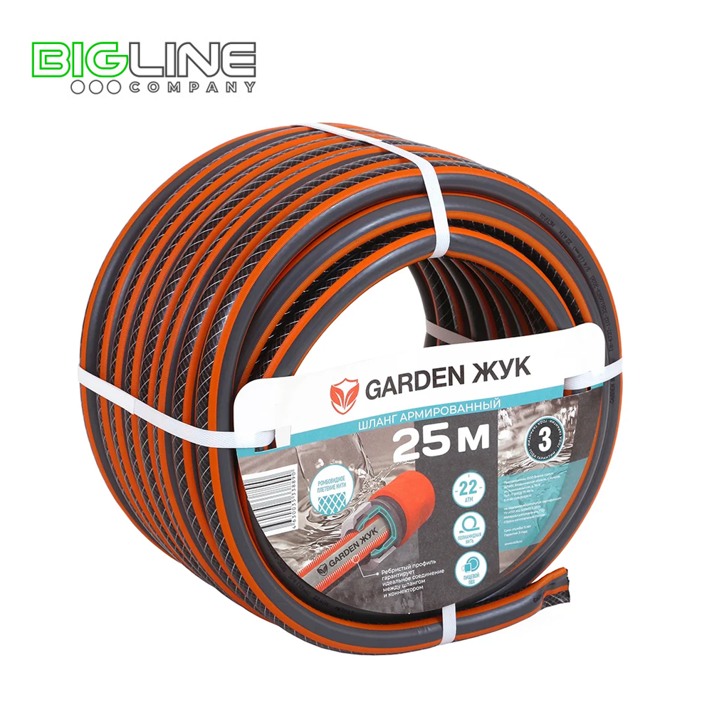 Армированный шланг GARDEN Жук из ПВХ сочетает в себе премиальное качество и свойства при которых эксплутация шланга возрастает в разы!