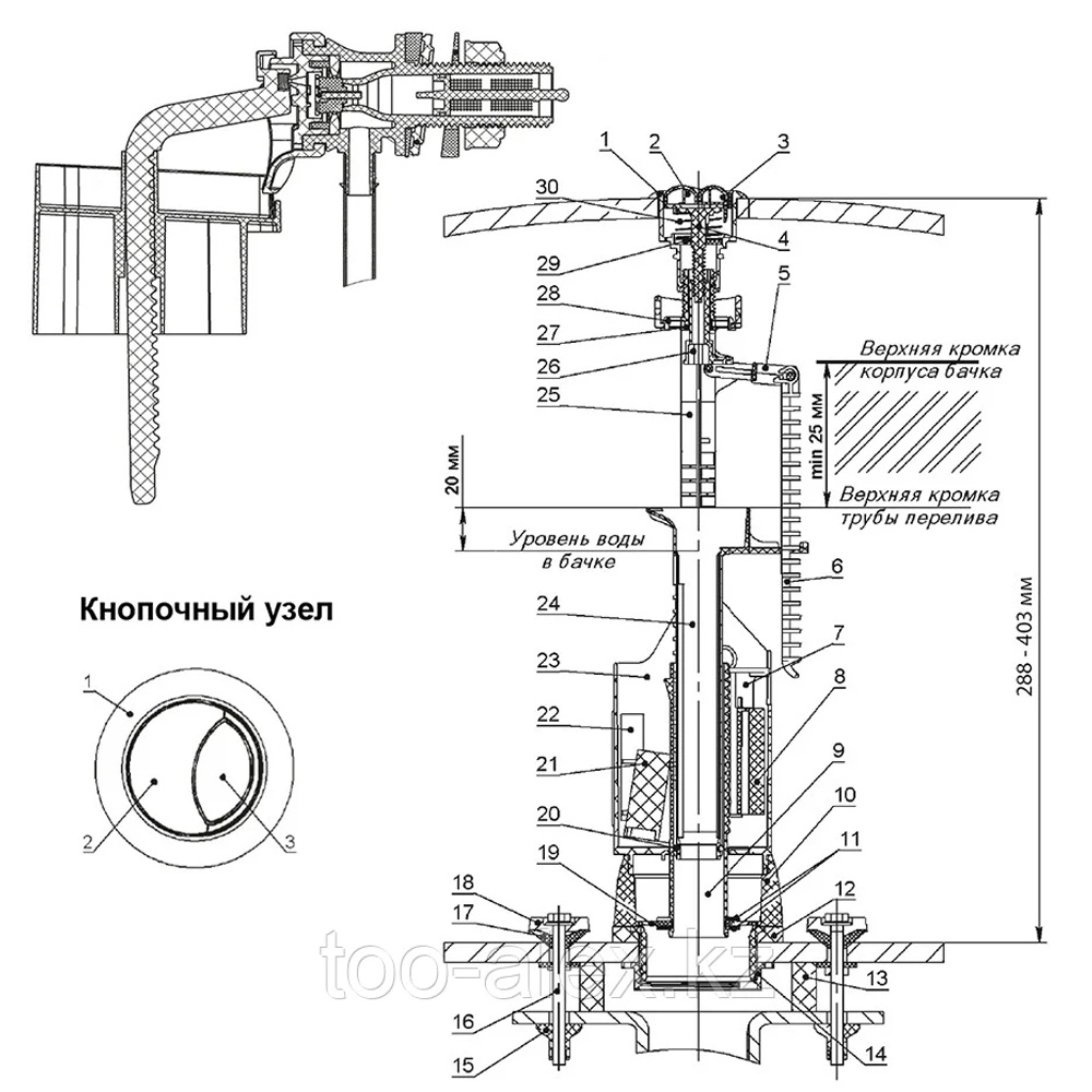 *Для керамических бачков с отверстием в крышке бачка Ø39-44 мм