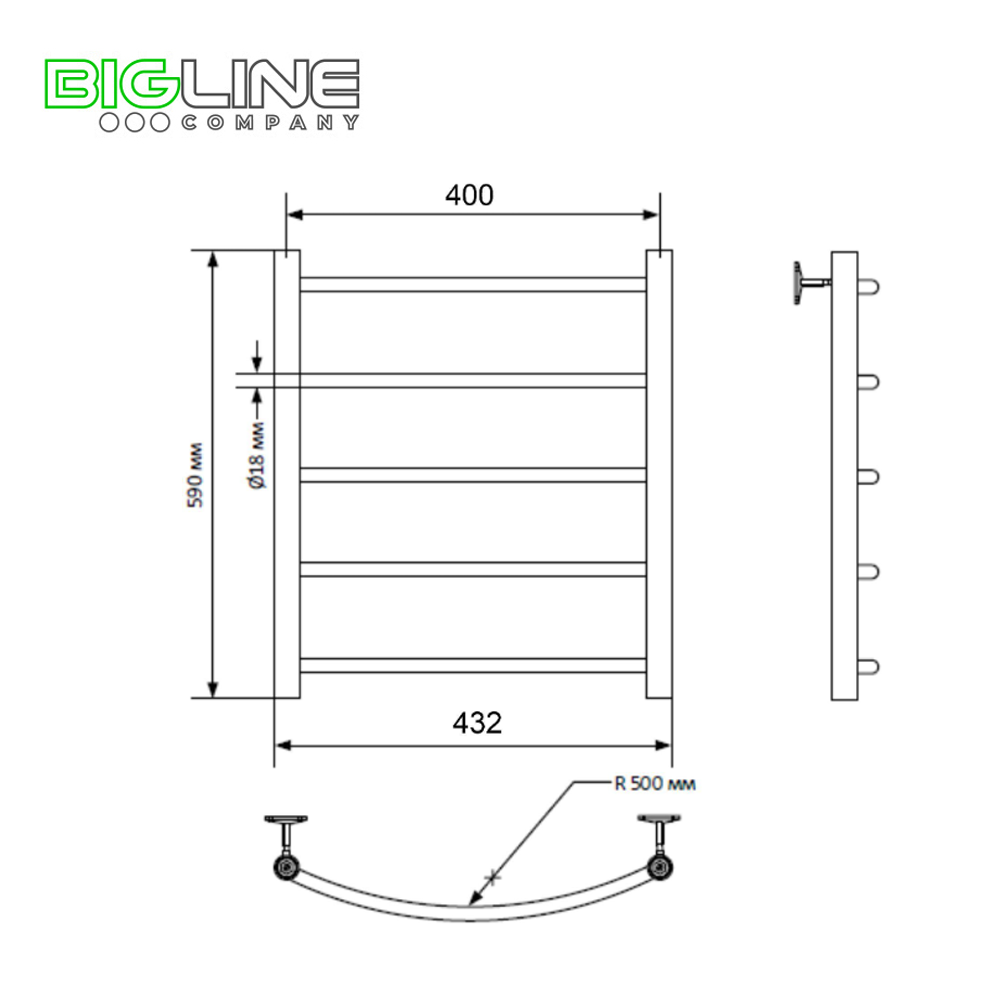 Полотенцесушитель нерж.INDIGO Arc d25 60*40 б/п ( к-1,полиров.)