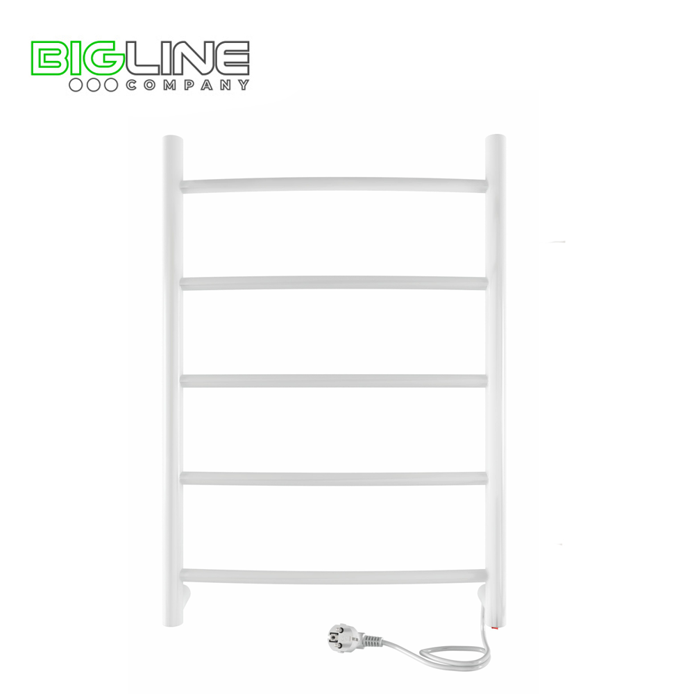 Современный электрический энергосберегающий полотенцесушитель торговой марки INDIGO Arc с пятью дугообразными перекладинами. Коллектор и перекладины выполнены из круглой трубы и покрытым белой эмалью, что придает изделию изящность. Витой шнур органично и аккуратно смотрится с полотенцесушителем. Кнопка вкл/выкл. находится на вилке.