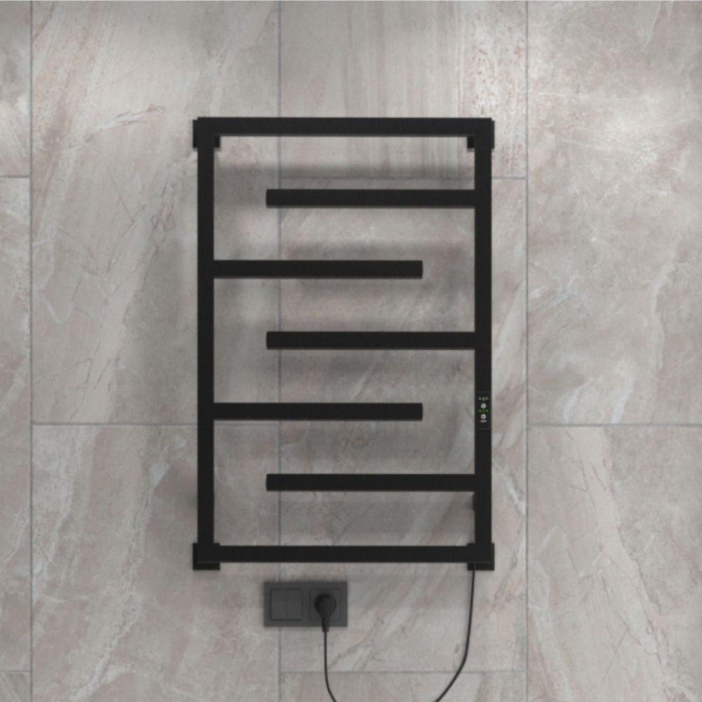 Полотенцесушитель нерж.INDIGO Delos 80*50 electro (таймер,скр.монтаж,унив.подкл R/L,чёрный муар)