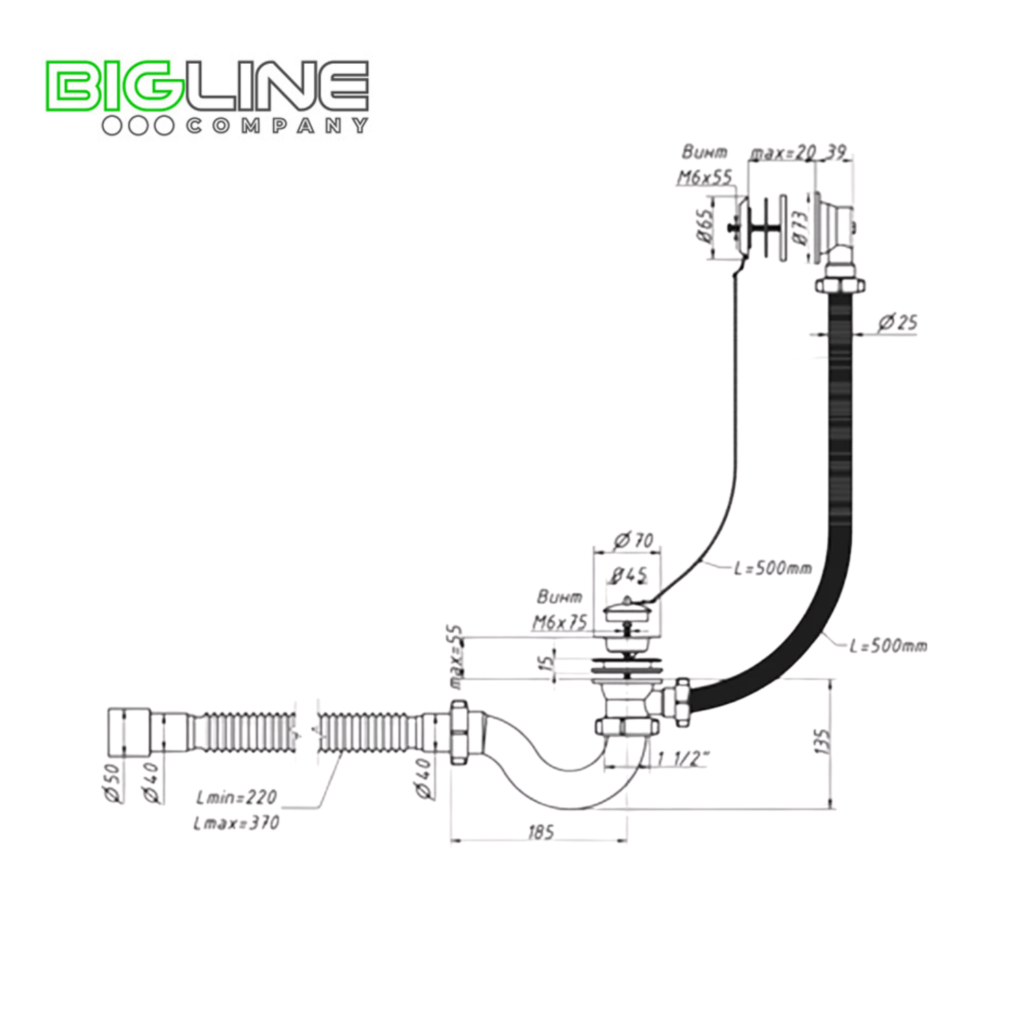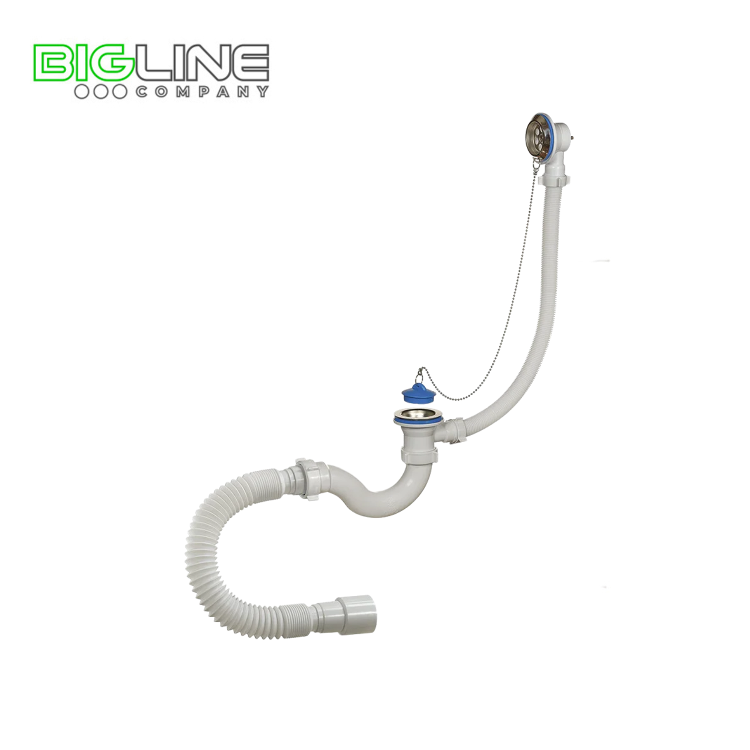 Сифон 1 1/2"х40, с переливом и нержавеющими чашками, для ванн и глубоких душевых поддонов. Конструкция сифона S-образная, прямоточная. В комплекте латунная цепочка с пробкой. Отвод в канализацию гибкая труба 40 – 40/50.