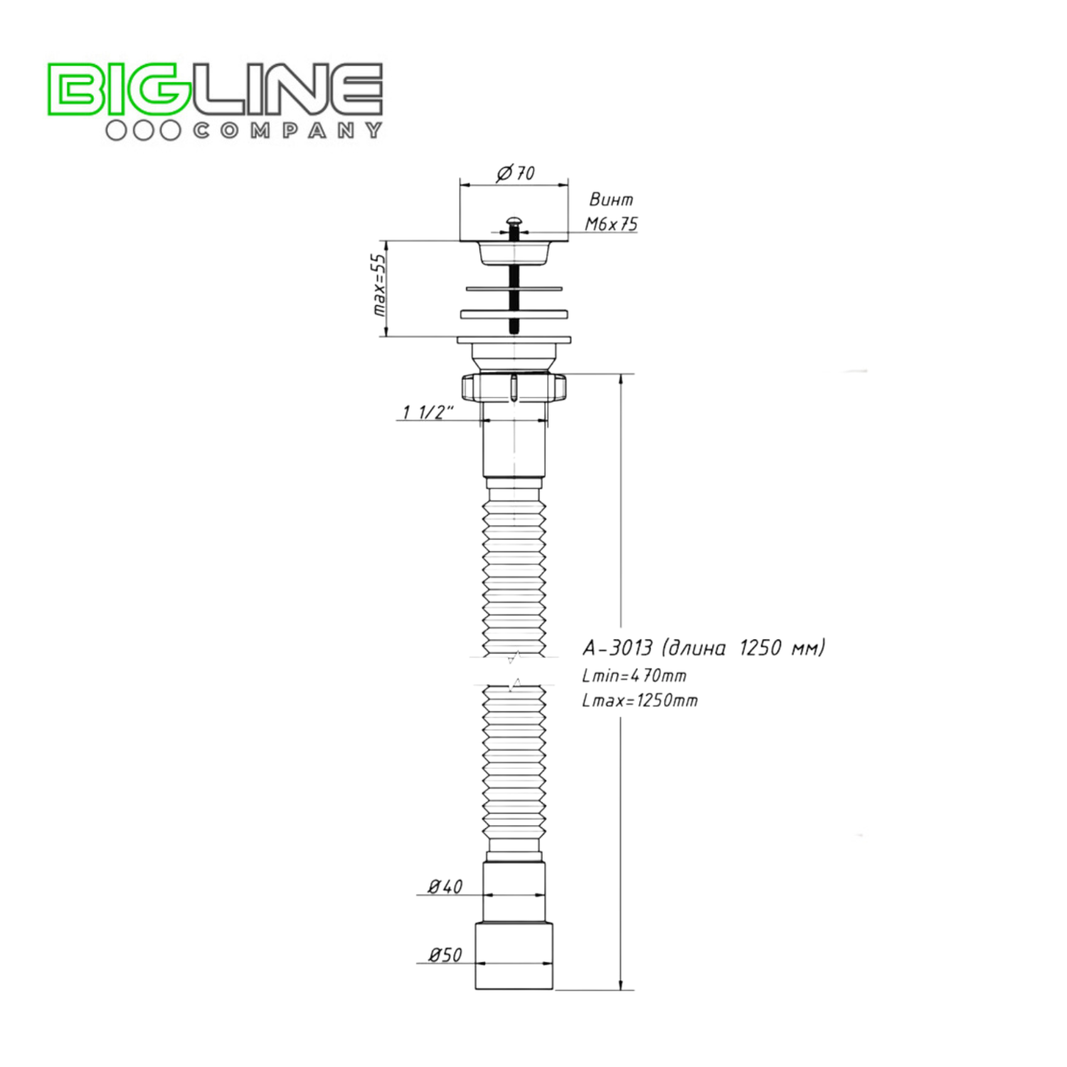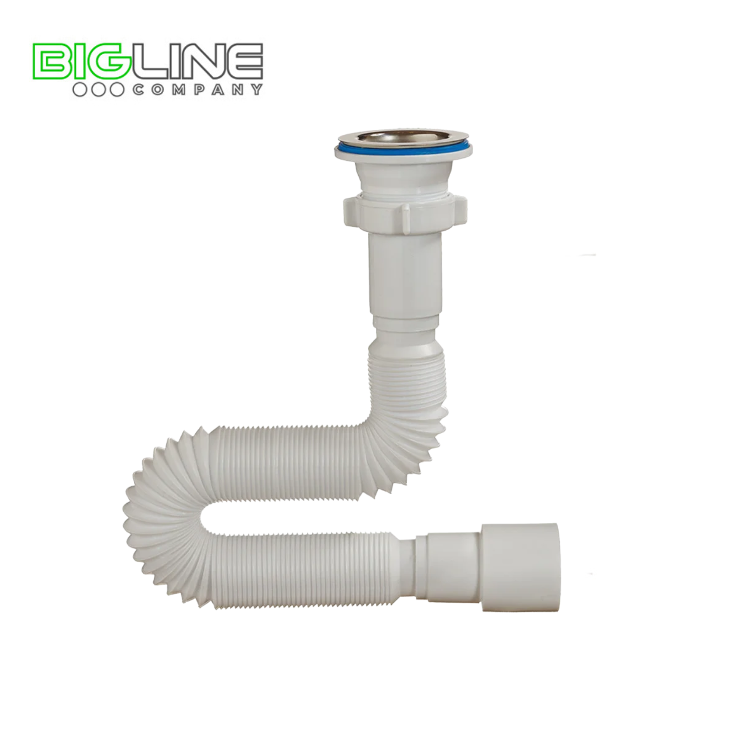Гибкая труба 1 1/2"х40/50 с выпуском с нержавеющей чашкой д.70мм для раковины и мойки. Длина гибкой трубы 470-1250мм.
