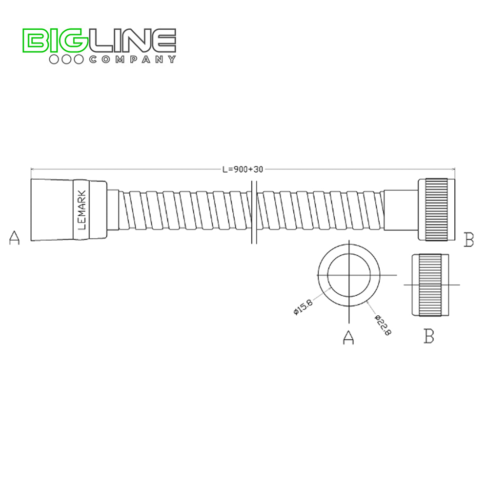 Шланг для душа,сталь хромированная, двухзагибный 0.9,пакет с подвесом LEMARK LE8027S
