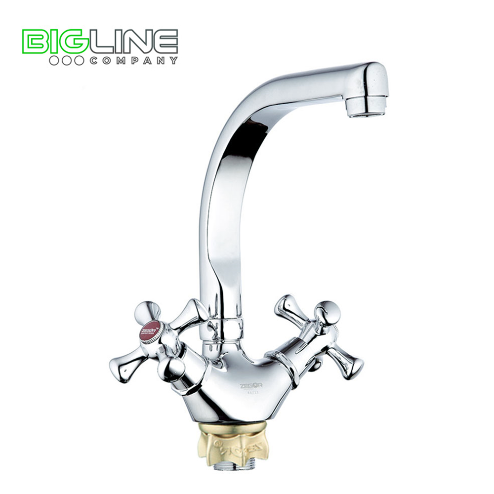 Смеситель ZEGOR DTZ4-D827 двуручный для кухни с высоким пов.изливом,гайка (корона) (10) Запросить прайс