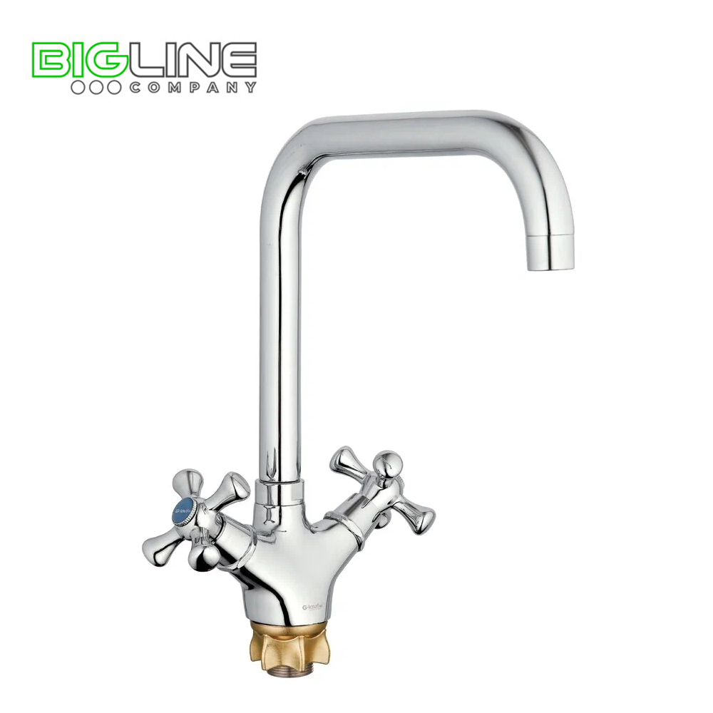 Смеситель ZEGOR DML4-C827 двуручный для кухни с поворотным изливом,на гайке (10) Запросить прайс
