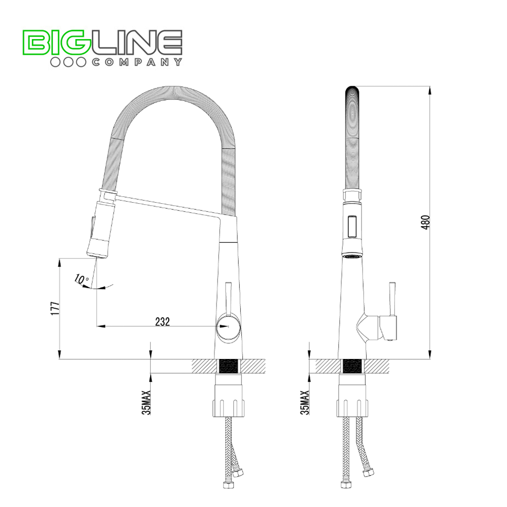 - 2-функциональная излив-лейка с аэратором и гибким шлангом 56 см
