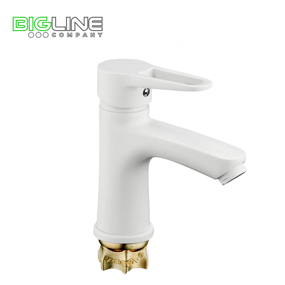 Смеситель ZEGOR PUD1-A045-YW одноручный для умывальника,монолитный,матовый белый,гайка (10) Запросить прайс
