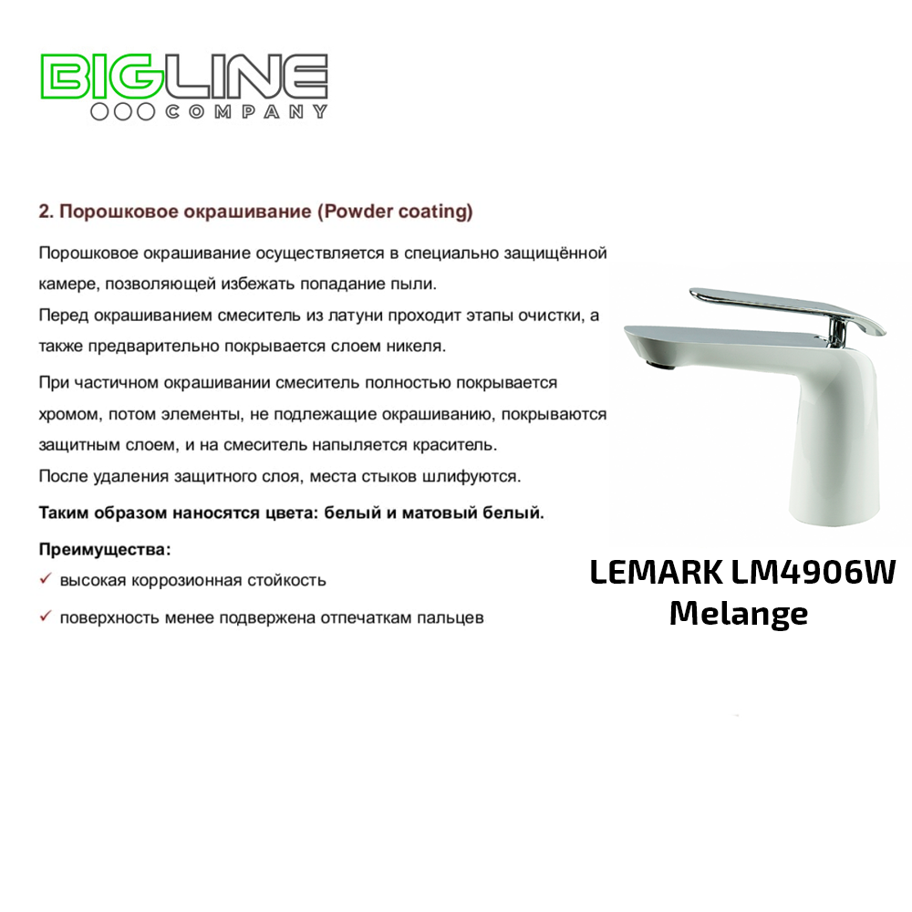 Смеситель LEMARK LM4906CW Melange для умывальника монолитный, хром/белый