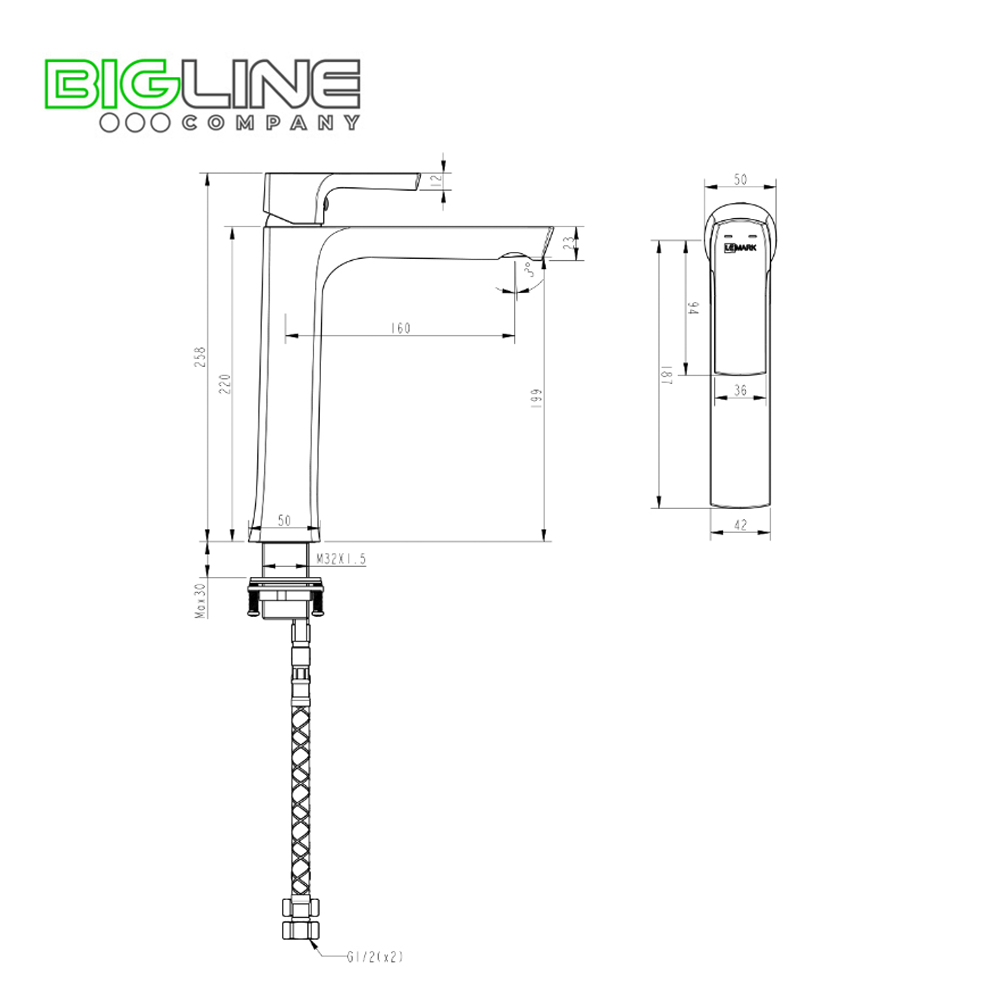 - Гибкая подводка ½” 60 см