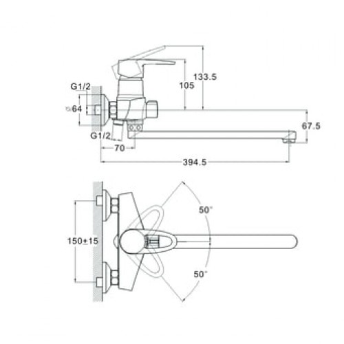 Смеситель ZEGOR NKE-A180 одноручный для ванны с плоским изливом 350 мм., дивертор поворотный (10) Запросить прайс