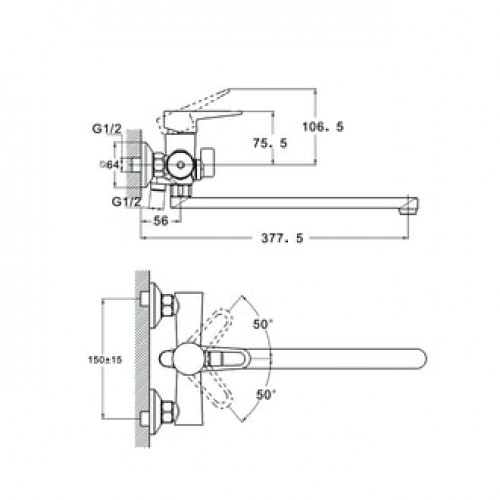 Смеситель ZEGOR PUD7-A045 одноручный для ванны с плоским поворотным изливом (10) Запросить прайс