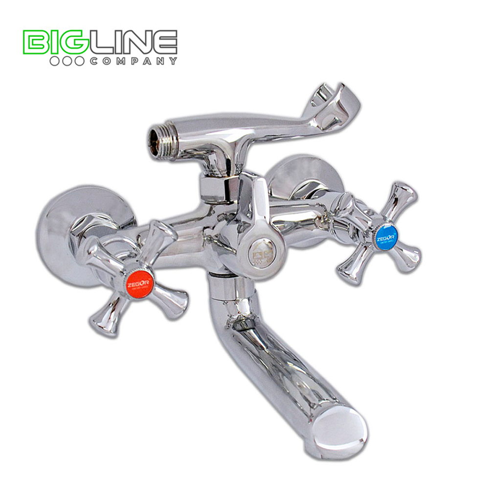 Смеситель ZEGOR DML3-A827 двуручный для ванны с литым изливом,дивертор поворотный 360 (10) Запросить прайс
