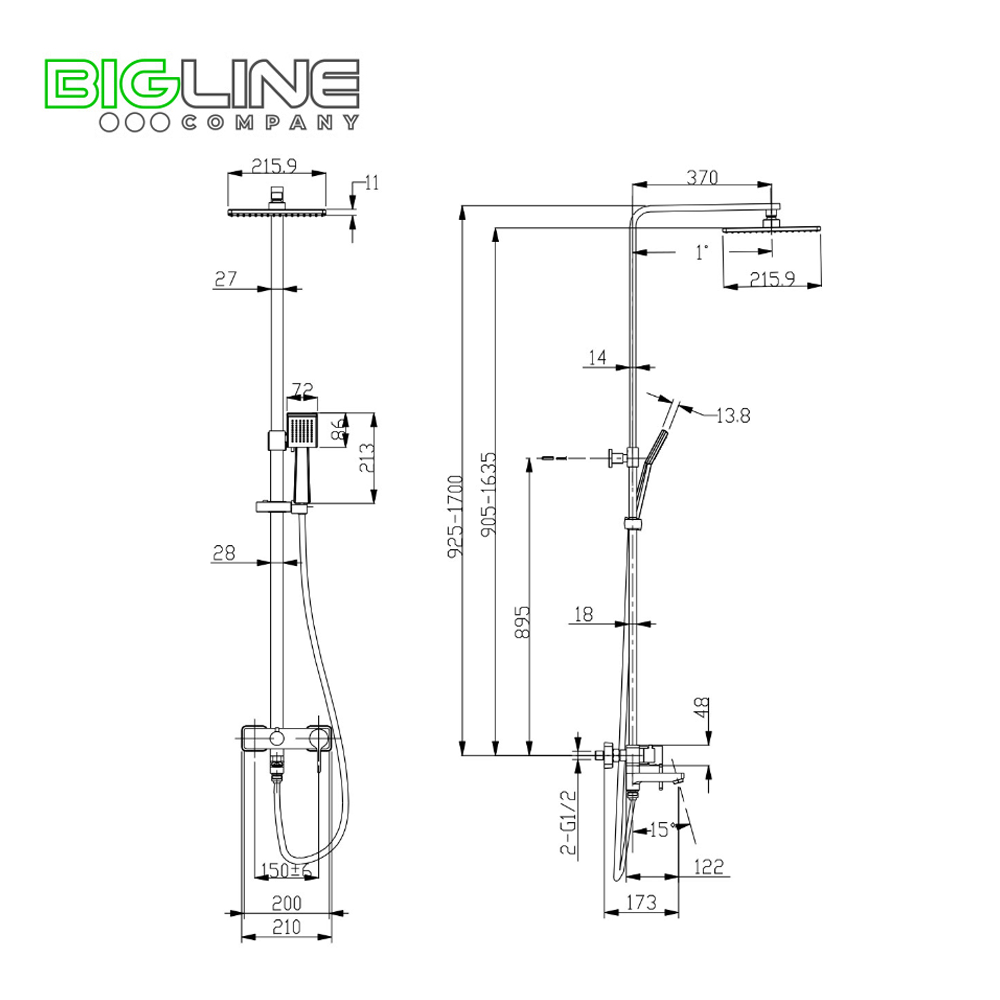 - Верхняя поворотная душевая лейка «Тропический дождь» 216x216 мм