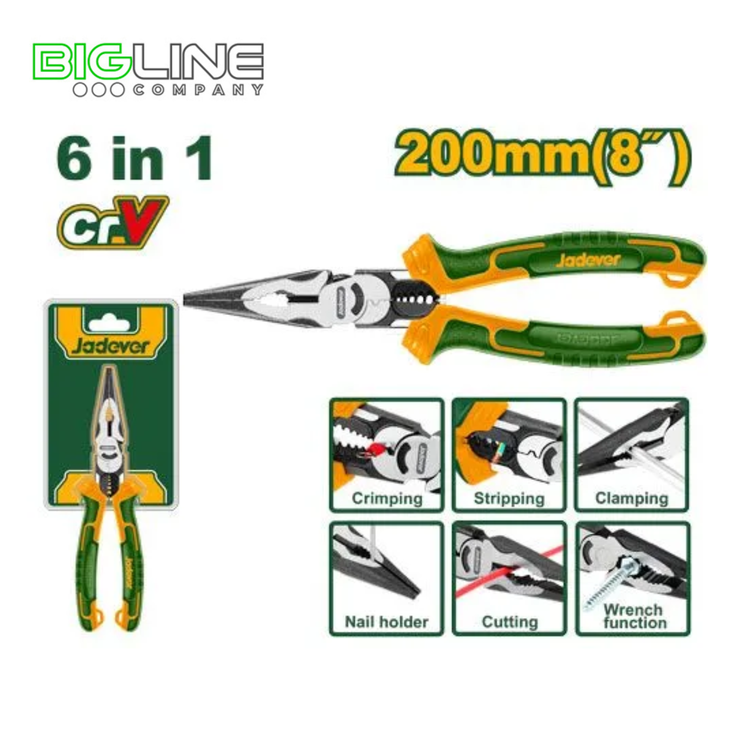 Купить тонкогубцы мультифункциональные 6 в 1 Jadever 200 мм в интернет-магазине BIGLINE. Доставка по Казахстану.