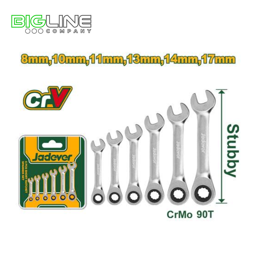 Набор коротких гаечных ключей с храповым механизмом 6шт Jadever (12/48)