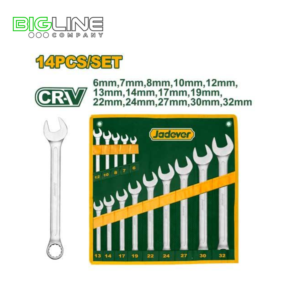 Набор комбинированных гаечных ключей JDSP1M14, 14 шт. (6–32 мм) — универсальный комплект для выполнения широкого спектра слесарных и монтажных работ. Ключи изготовлены из прочной хром-ванадиевой стали (Cr-V), что обеспечивает высокую прочность, устойчивость к износу и коррозии. Идеально подходят как для профессионального, так и для бытового применения.