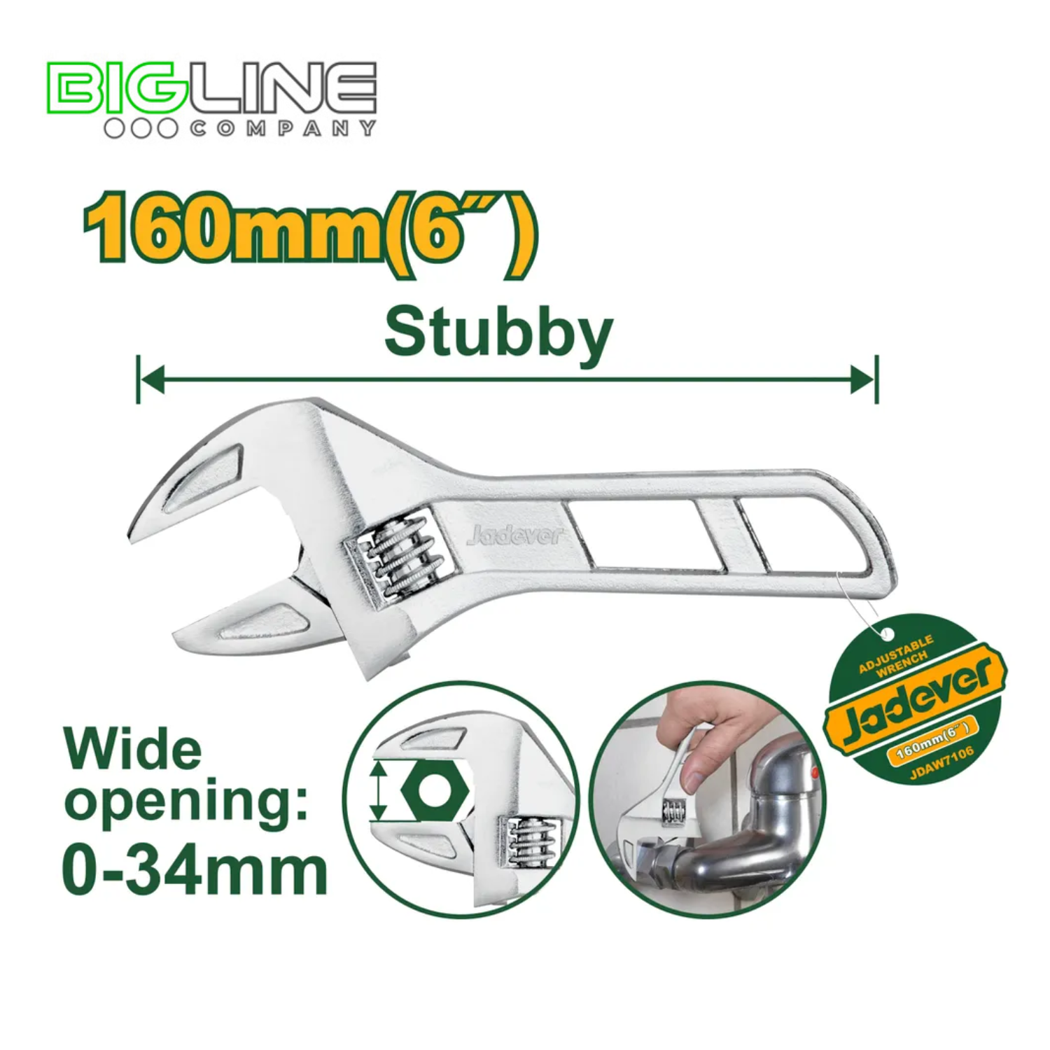 Ключ разводной облегченный 160 мм (0–34 мм) Jadever — компактный и универсальный инструмент для работы с крепежом разного размера. Благодаря прочной конструкции из закаленной стали и облегчённому корпусу, ключ удобен в использовании и долговечен.