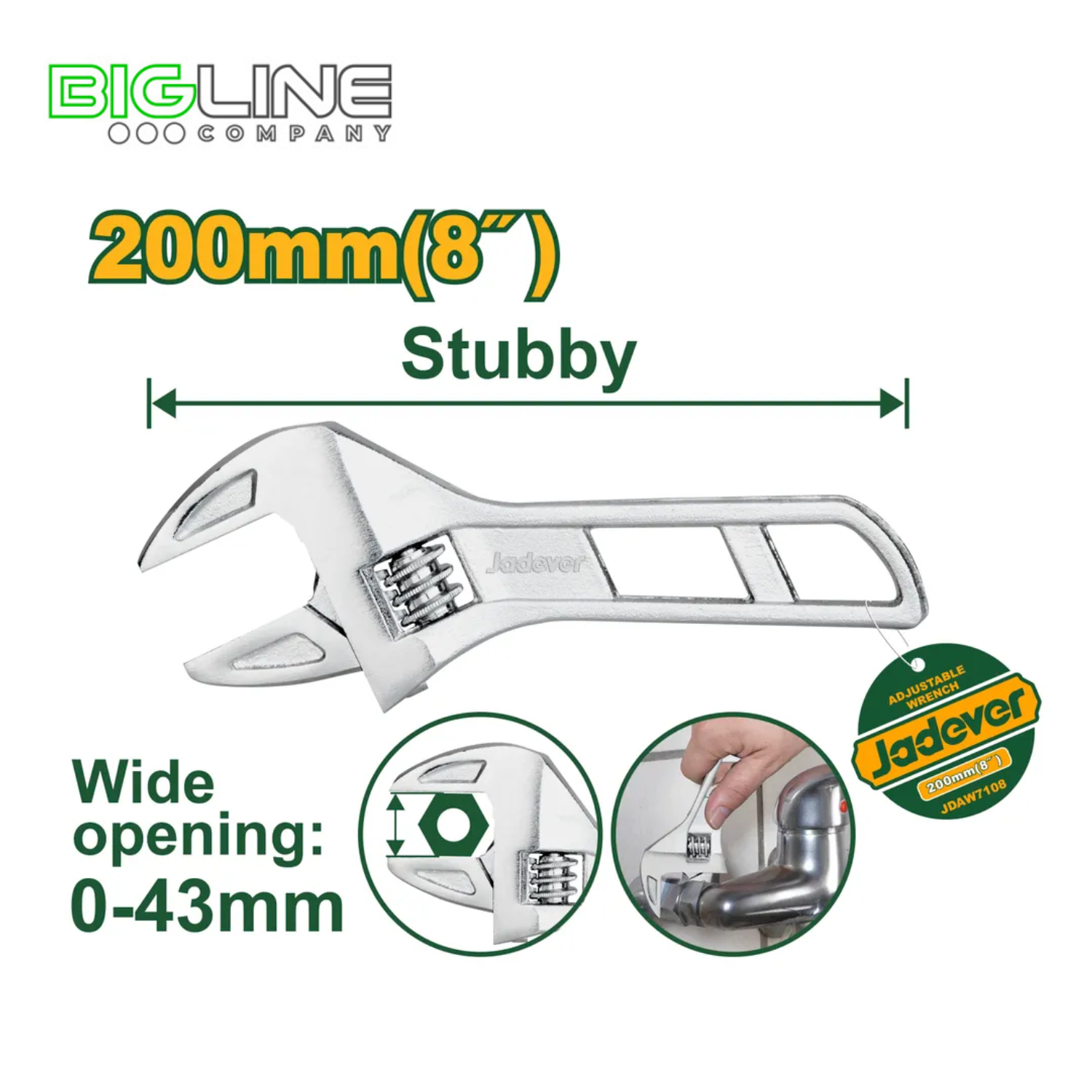 Ключ разводной облегченный 200 мм (0–43 мм) Jadever — прочный и удобный инструмент для работы с крепежом разных размеров. Изготовлен из закаленной стали с облегчённым корпусом, что обеспечивает надёжность и комфорт при использовании.