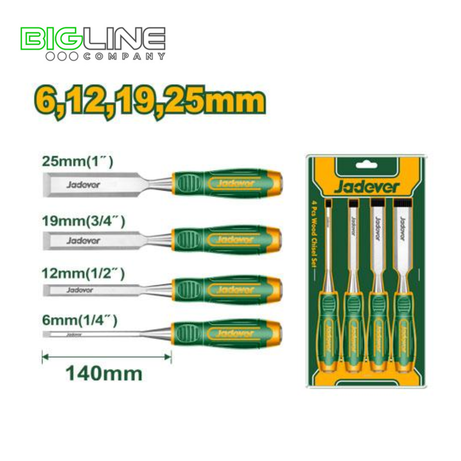Набор стамесок Jadever 4 шт (6, 12, 19, 25 мм) — качественный комплект инструментов для профессиональной и бытовой работы по дереву. Стамески изготовлены из прочной инструментальной стали, обеспечивающей долговечность и высокую точность реза.