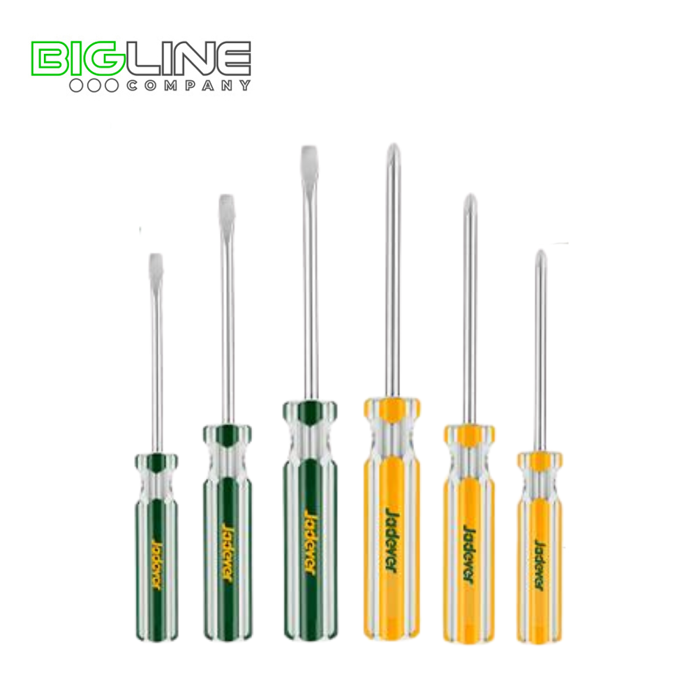 Набор отвёрток JADEVER из 6 предметов предназначен для точного и безопасного завинчивания и откручивания крепежей с различными шлицами. В комплект входят отвёртки с прямым (SL) и крестообразным (PH) жалом – это самые востребованные типы в домашнем и профессиональном использовании.