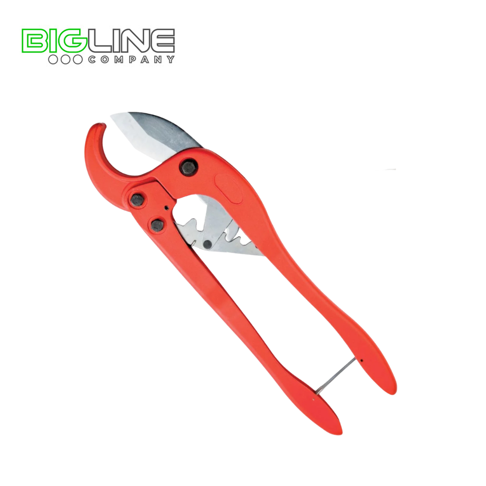 Ножницы для резки труб CANDAN предназначены для резки армированных и неармированных полипропиленовых, металлопластиковых и полиэтиленовых труб диаметром от 40 до 63 мм. Острое долговечное лезвие изготовлено из высококачественной нержавеющей стали. Эргономичные, удобные в работе рукоятки покрыты противоскользящей электростатической краской с шероховатой фактурой. Специальный трещёточный механизм многократно снижает усилие, необходимое для разрезания пластиковой трубы. При этом сам срез получается ровным, аккуратным, без зазубрин и заусенцев.