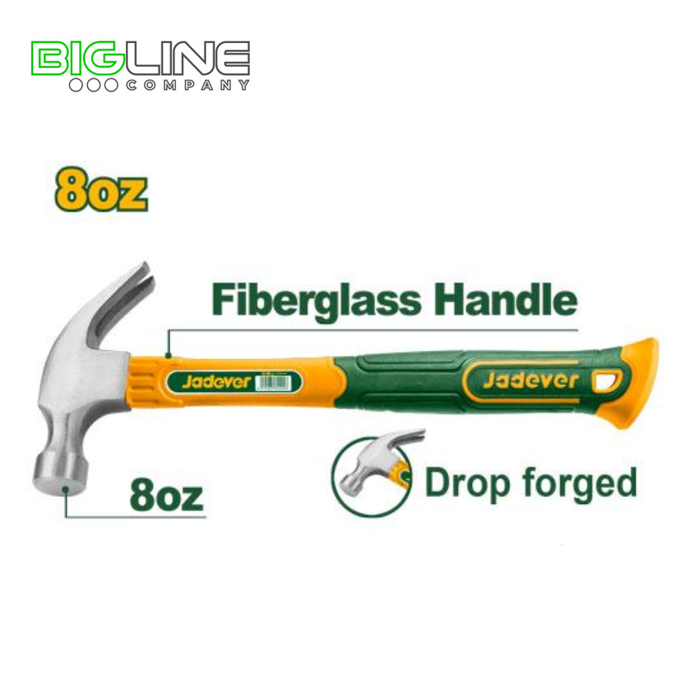 Молоток с раздвоенным хвостом 220гр,ручка из стекловолокна Jadever (6/36)